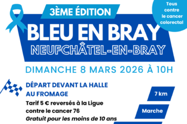 Bleu en Bray – 3ème édition : mobilisons-nous ! La Ville de Neufchâtel-en-Bray vous donne rendez-vous dimanche 8 mars 2026 pour la marche solidaire Bleu en Bray, organisée aux côtés