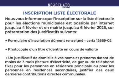 Inscription liste électorale Nous vous informons que l’inscription sur la liste électorale pour les élections municipales est possible par internet jusqu’au 4 février et en mairie jusqu’au 6 février 2026,