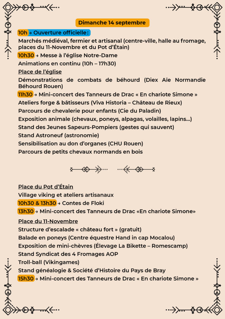 Dimanche : Grand marché médiéval, fromages, château fort à escalader, animaux, ateliers, combats de béhourd, trollball, balade en poneys…