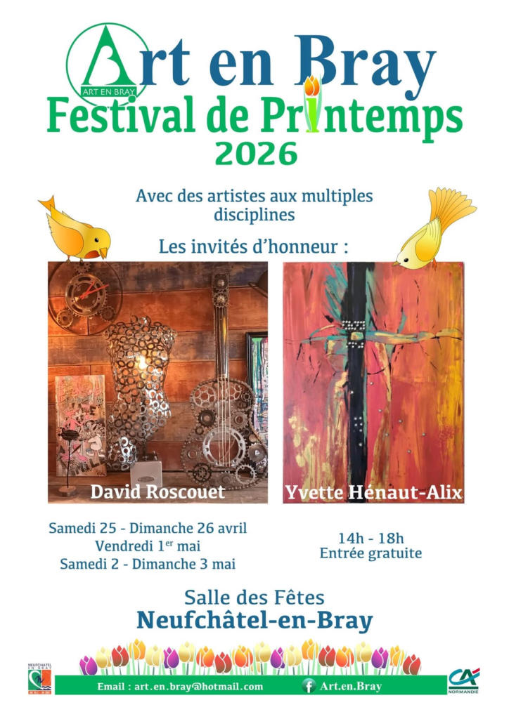 L’association Art en Bray a le plaisir d’annoncer la tenue de son festival de printemps, un rendez-vous artistique mettant à l’honneur la diversité des pratiques et des talents. Peinture, sculpture, illustration et bien d’autres disciplines seront représentées, offrant aux visiteurs une immersion dans un univers créatif riche et varié.