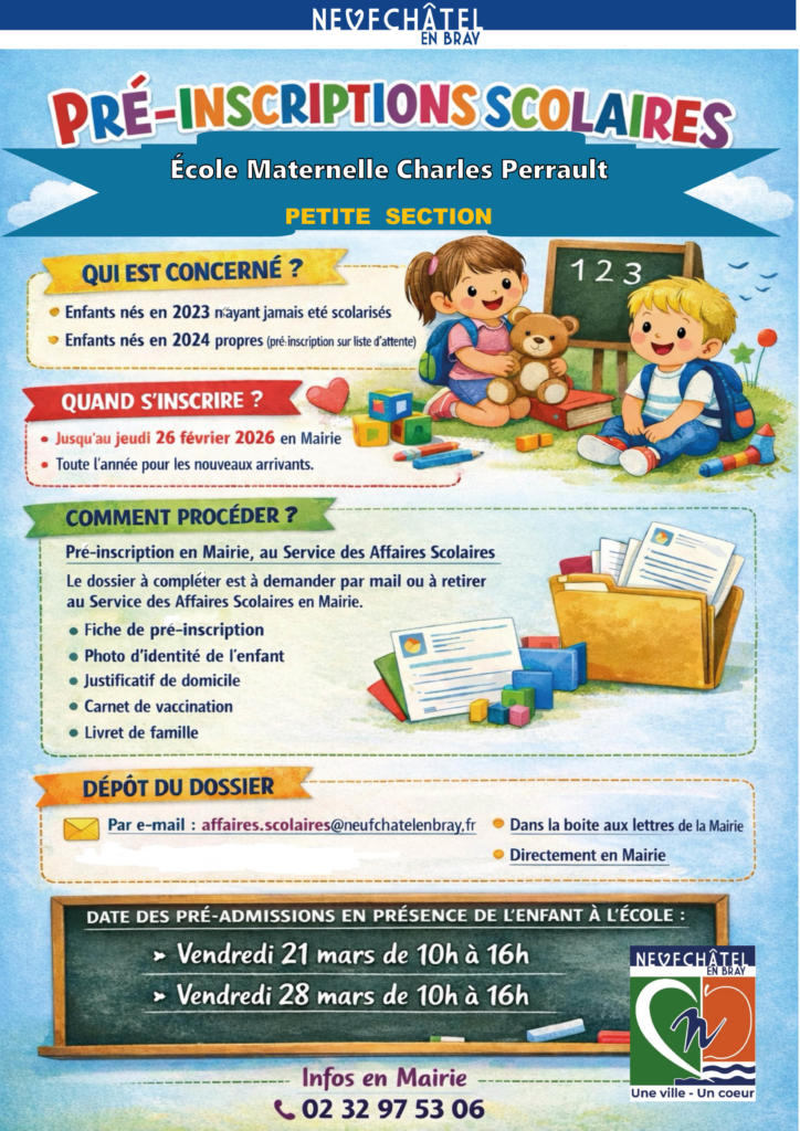 La Ville de Neufchâtel-en-Bray informe les familles que les pré-inscriptions pour l’école maternelle sont désormais ouvertes !
