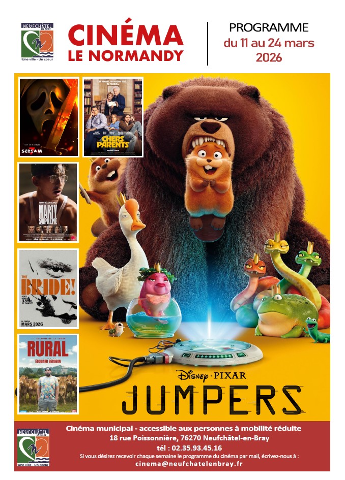 Retrouvez votre programme du 11 au 24 mars 2026 de votre cinéma LE NORMANDY !!