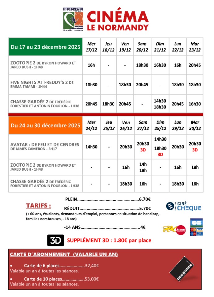 Retrouvez votre programme du 17 au 30 décembre 2025 de votre cinéma LE NORMANDY !!