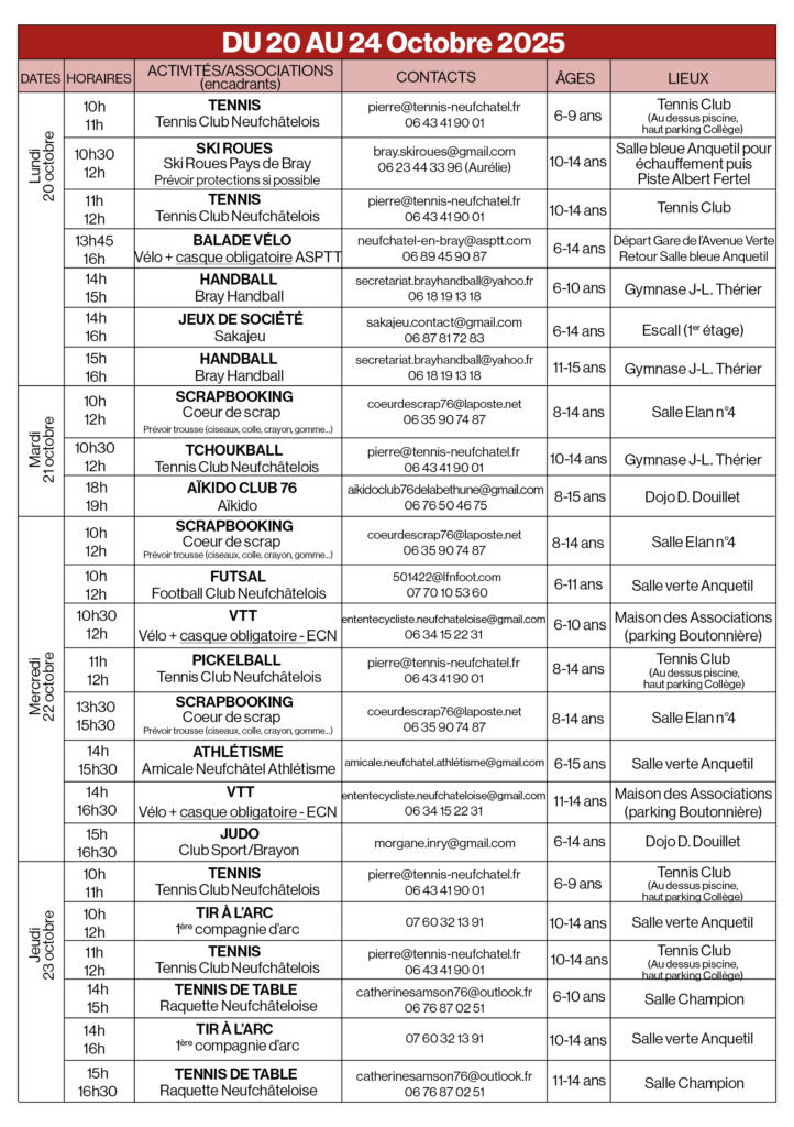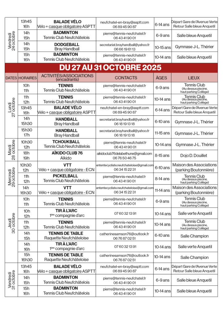 – Inscription obligatoire (voir mail ou portable par activité, sur programme )